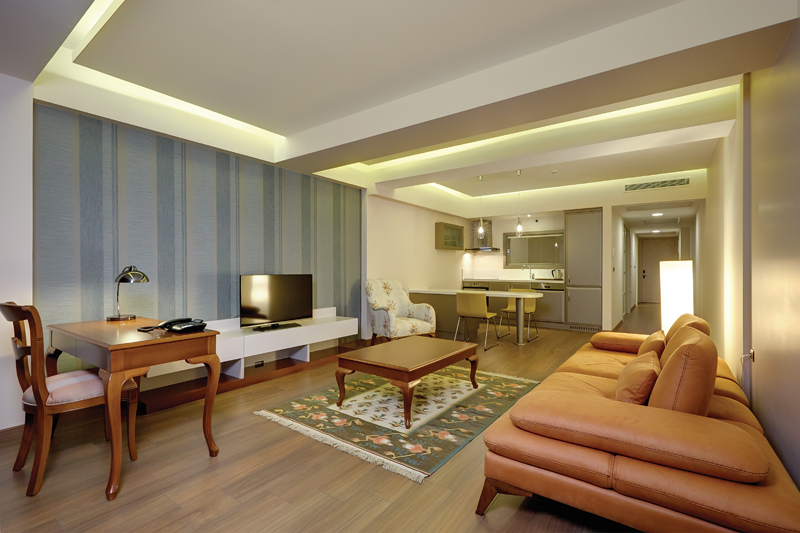 - Fully furnished with sofa, desk, dining table, closet, coffee table, king size bed, dresser and TV unit