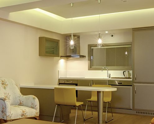 - Built in kitchen with state of the art refrigerator, electric cooker, oven, ventilator and dishwasher